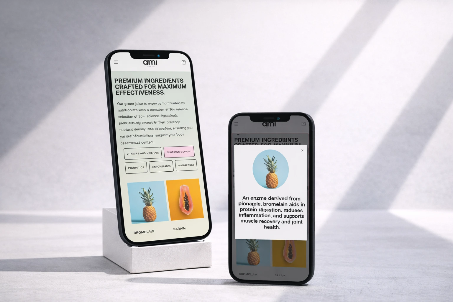 Ami Fitness partnered with Unit8 Studio to create a custom Shopify storefront that balances strong visual design with a smooth, conversion-focused user experience.