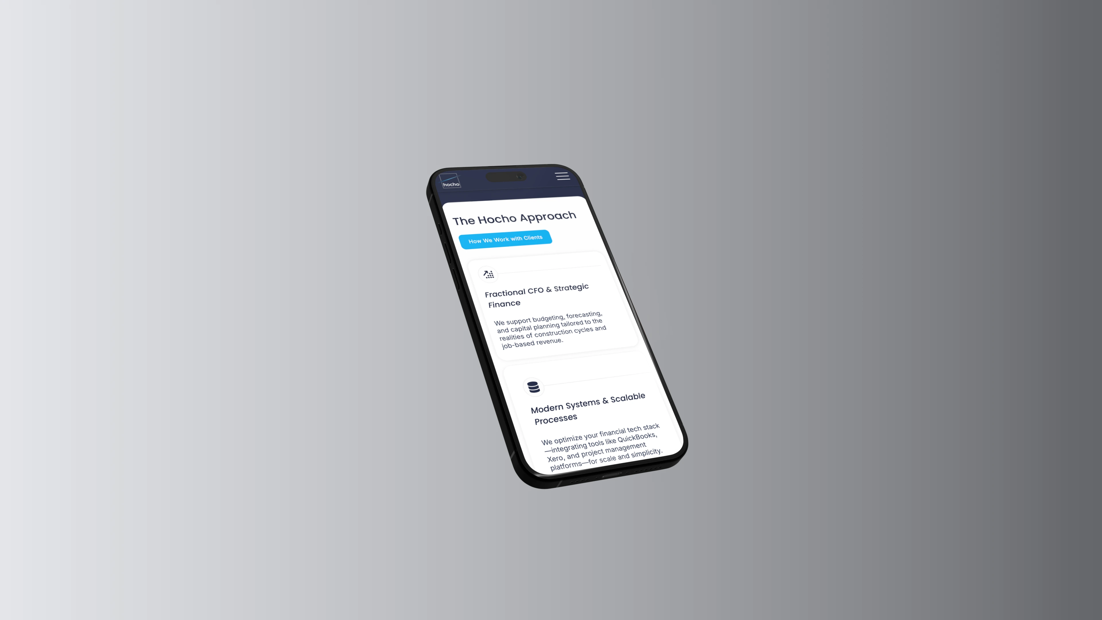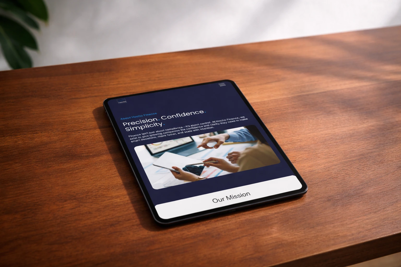 The final result is a modern, professional web presence that aligns with Hocho Finance’s brand tone, visual hierarchy, and standards of trust.